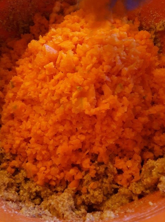 Rum und die Möhren ebenfalls dazu geben und unterziehen. |
